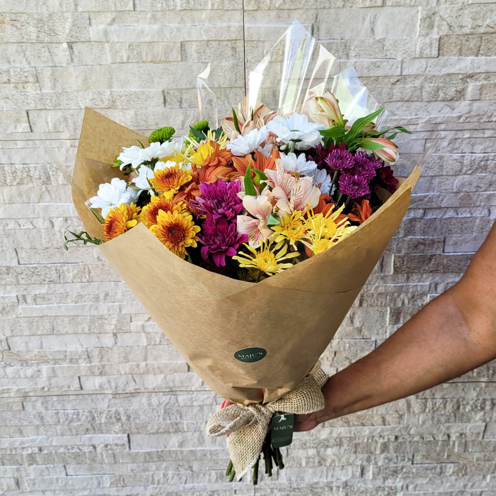 Pode haver variação de flores e cores conforme a disponibilidade.